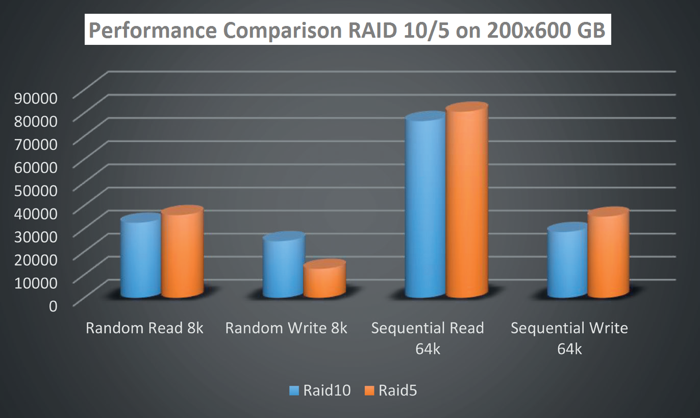 What is more efficient – RAID 5 OR RAID 10? It looks like a seemingly simple question with a pandering answer ‘RAID 10’. Nevertheless the situation shall not be simplified and the performance potential of RAID 10 does not always have to show itself compared to RAID 5.